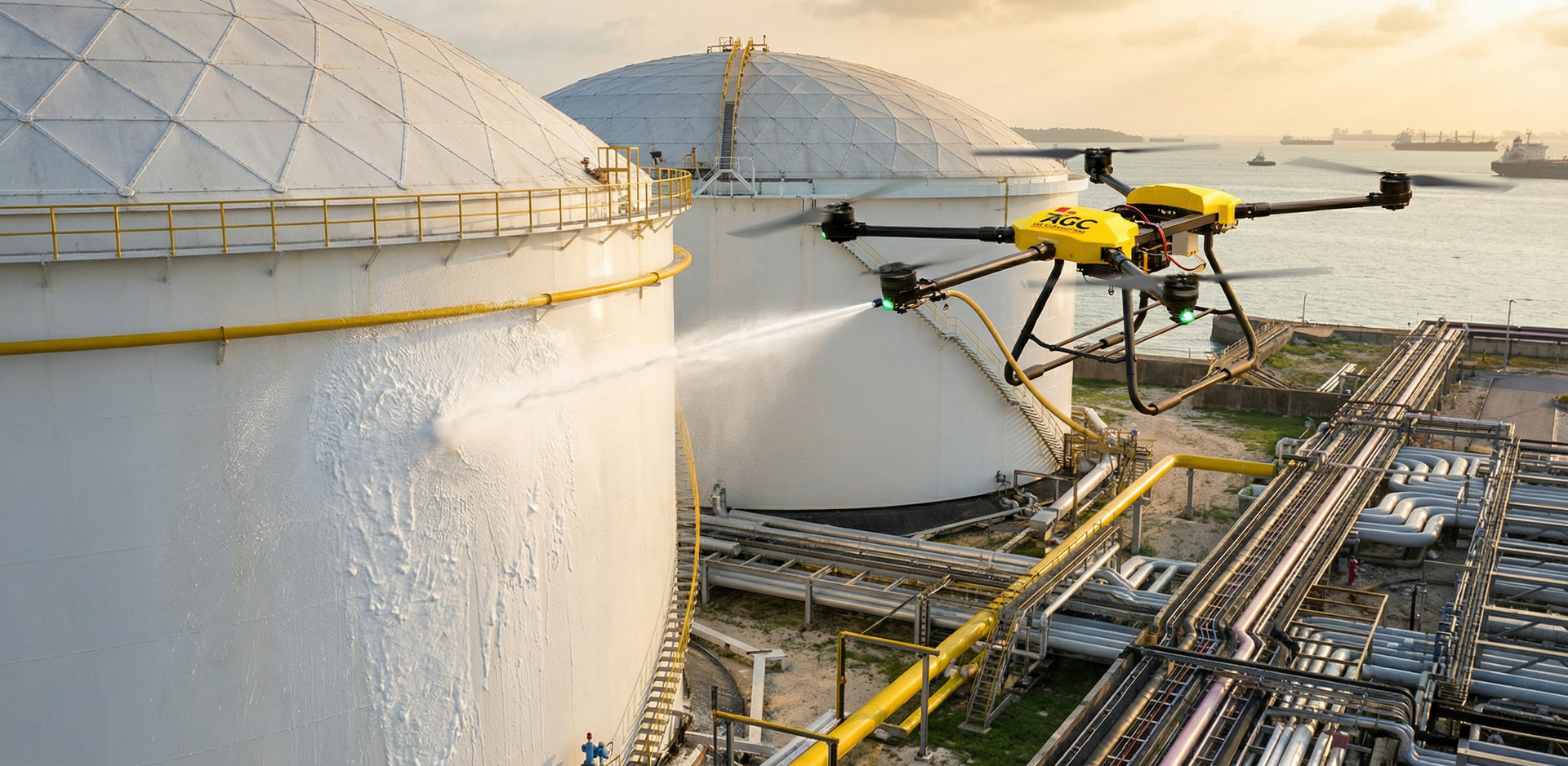 شركة AGC Clean Solutions رائدة في مجال تنظيف المباني والسفن والخزانات والألواح الشمسية باستخدام الدرون في المملكة العربية السعودية. نقدم حلول تنظيف مبتكرة وحديثة تجمع بين التقنية المتطورة والخبرة المتراكمة.